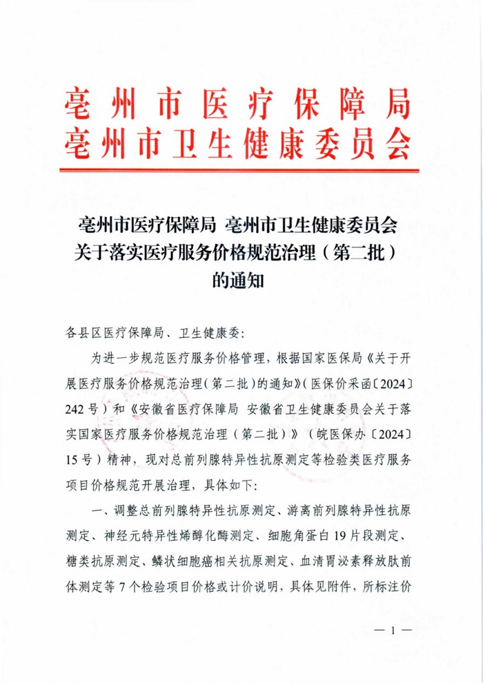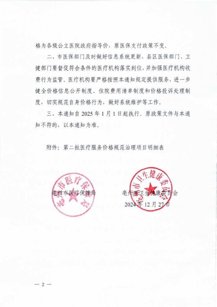 關(guān)于落實醫(yī)療服務價格規(guī)范治理(第二批)的通知