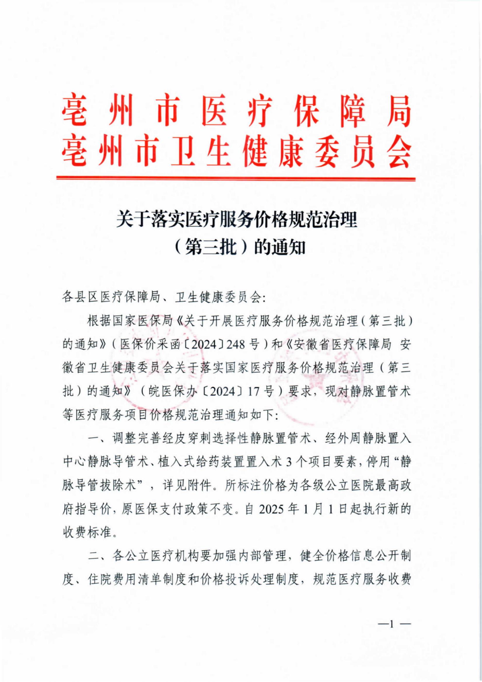 關(guān)于落實(shí)醫(yī)療服務(wù)價(jià)格規(guī)范治理(第三批)的通知