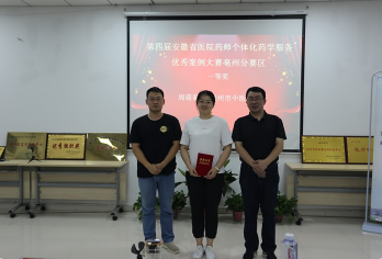 本次比賽由來自三縣一區(qū)的藥學(xué)專家、臨床專家擔(dān)任評委,參賽選手按照抽簽順序依次上場進(jìn)行演講,經(jīng)過4個(gè)小時(shí)的激烈角逐,我院臨床藥師周萌萌榮獲一等獎(jiǎng),并將代表亳州市參加安徽省半決賽。