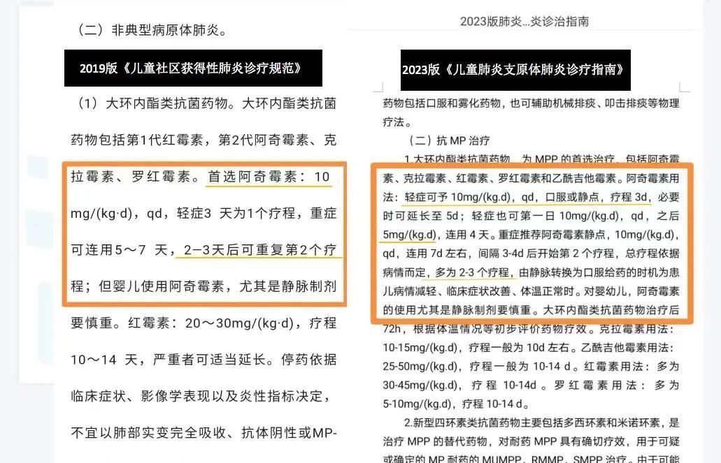 療程方面,最新的《兒童肺炎支原體肺炎診療指南(2023 年版)》有了一些變化