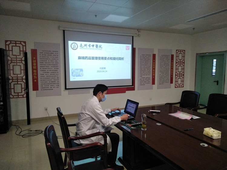 會上,鄭元魁藥師做臨床藥師進修結業(yè)匯報,鄧顏博藥師針對藥房麻精藥品相關問題做專項培訓。