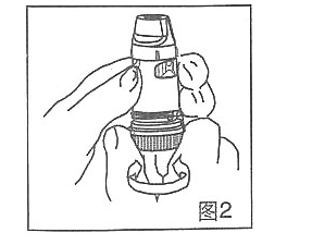 2. 拿直都保,在上藥期間,握住底部紅色旋柄部分和都保中間部分,向一個(gè)方向旋轉(zhuǎn)到底,然后再向反方向旋轉(zhuǎn)到底,在這一過(guò)程中,聽(tīng)到有“咔噠”聲,這表示完成了一次裝藥。