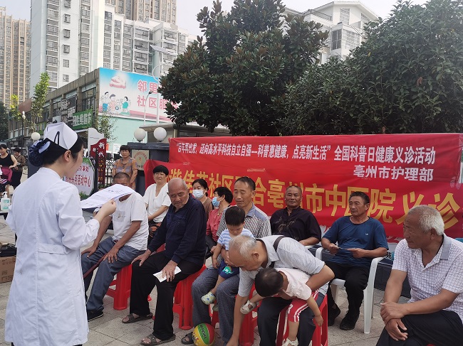 2021年9月15日上午,我院護(hù)理部圍繞全國(guó)科普日“百年再出發(fā),邁向高水平科技自立自強(qiáng)--科普惠健康,點(diǎn)亮新生活”的主題,組織開展了“助力百姓健康,中醫(yī)養(yǎng)生保健”為主題的全國(guó)科普日活動(dòng)。本次活動(dòng)在渦北還原小區(qū)如期舉行。