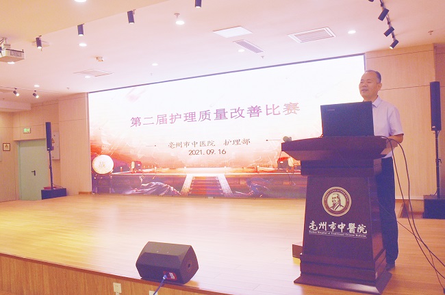 競賽評分為原始資料和現(xiàn)場演講兩個部分。前期護理部已經(jīng)對進入決賽的14個科室上報的項目原始資料進行審核評比。下午14:30,競賽在第一會議室正式開幕,分管院長尹安坤出席本賽,擔任本次競賽的評委有護理部主任吳曉紅、質(zhì)控辦主任秦生艷、護理部副主任孫家華、大外科護士長洪艷、骨二科護士長聶艷芳、體檢科護士長劉貝貝。