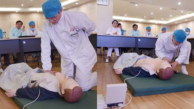 賽場上選手們精神飽滿,比賽過程緊張有序,發(fā)揚(yáng)急救過程爭分奪秒的精神,從判斷意識(shí)、啟動(dòng)急救反應(yīng)系統(tǒng)到胸外心臟按壓、開放氣道、球囊通氣等,選手們展現(xiàn)了規(guī)范的操作流程和嫻熟的急救技能。
