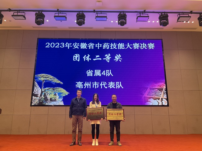 11月18日,由安徽省衛(wèi)生健康委員會 (中醫(yī)藥管理局)、安徽省總工會共同主辦的2023年安徽省中藥技能大賽決賽在合肥舉行。來自省內各市、省屬醫(yī)療機構入圍決賽的20個代表隊60名選手參賽。亳州市中醫(yī)院中藥師王帥、周夢雅,華佗中醫(yī)院中藥師王娜代表亳州市參加比賽,取得了團體二等獎的好成績,王帥榮獲個人獎全省一等獎。