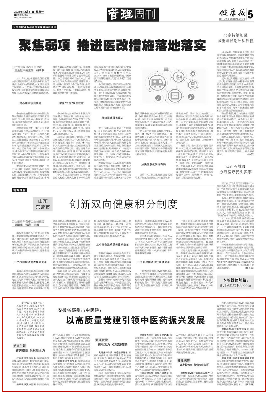 聚焦健康,提升醫(yī)療服務能力 以“政府搭臺、醫(yī)院主導、群眾受惠”為原則,亳州市中醫(yī)院統(tǒng)一運營模式、基礎設施、流程管理、信息系統(tǒng)、費用結算和服務功能。
