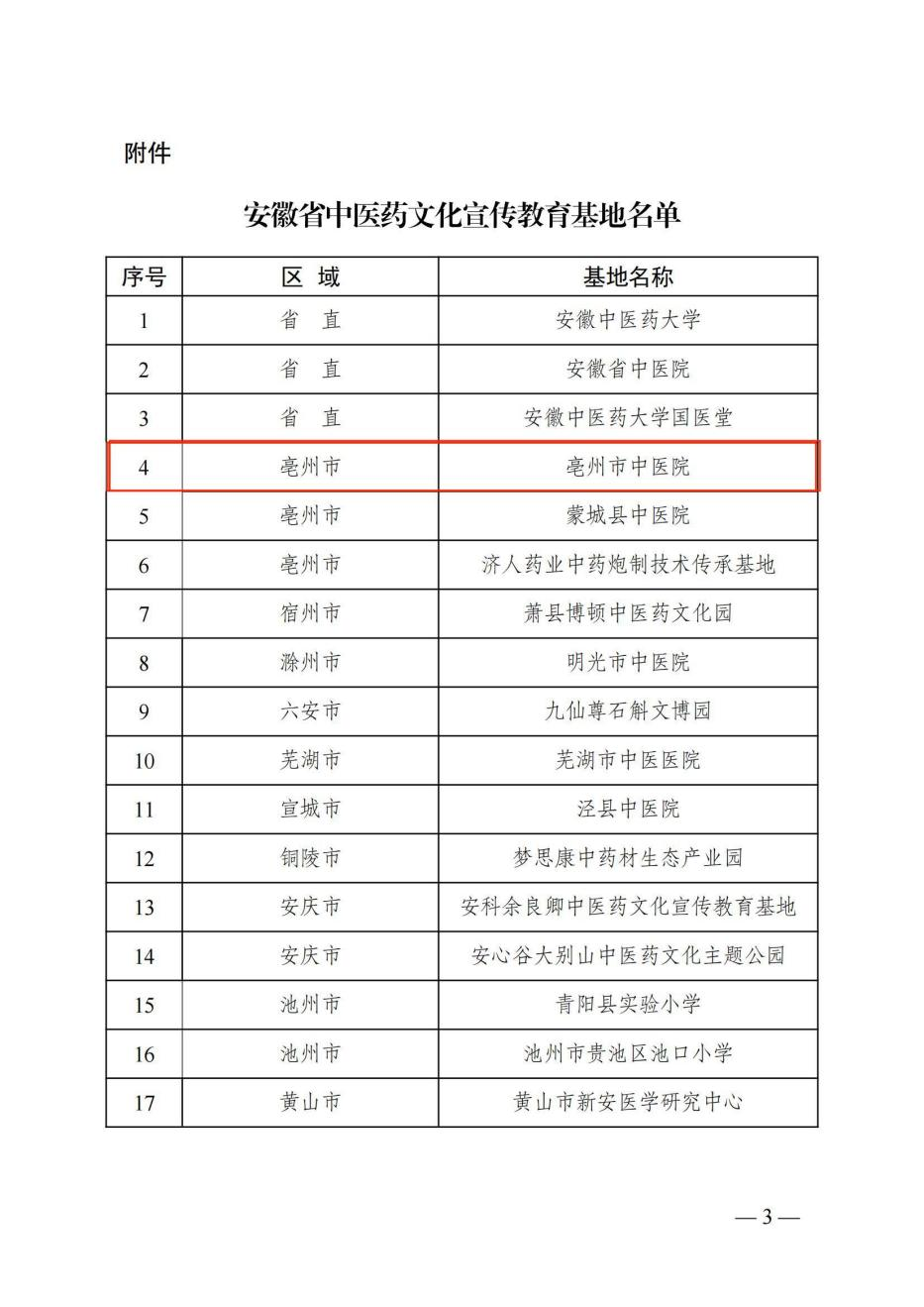日前,安徽省衛(wèi)生健康委、安徽省文化和旅游廳、安徽省中醫(yī)藥管理局聯(lián)合公布了安徽省中醫(yī)藥文化宣傳教育基地名單,亳州市中醫(yī)院入選,獲評安徽省中醫(yī)藥文化宣傳教育基地。