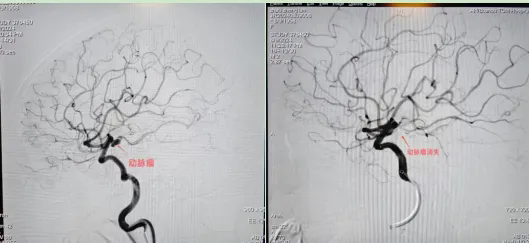 由于該動脈瘤隨時可能再次破裂危及生命,王磊及科室醫(yī)生立即為趙女士在全麻下行動脈瘤栓塞術(shù),歷經(jīng)6小時,手術(shù)順利結(jié)束,術(shù)后造影見動脈瘤不顯影,載瘤動脈通暢。該手術(shù)的成功也標(biāo)志著我院在急診治療破裂動脈瘤方面,正在與時俱進(jìn),跨上了一個新臺階。