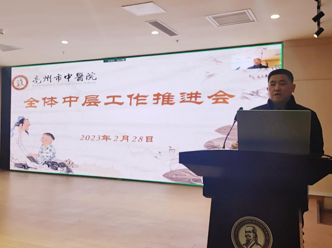 為深入貫徹落實(shí)黨的二十大精神,嚴(yán)肅黨內(nèi)政治生活,抵制商業(yè)賄賂,凈化醫(yī)院政治生態(tài),強(qiáng)化不敢腐的震懾,扎牢不能腐的籠子,增強(qiáng)不想腐的自覺(jué),2月28日下午,我院召開(kāi)全體中層會(huì)議,開(kāi)展警示教育培訓(xùn),并簽訂《亳州市中醫(yī)院2023年度黨風(fēng)廉政及行業(yè)作風(fēng)建設(shè)責(zé)任書(shū)》。會(huì)議由黨委書(shū)記唐超主持,醫(yī)院黨委班子、院委班子、全體中層干部、全院科室骨干現(xiàn)場(chǎng)參加會(huì)議,全院職工通過(guò)直播參加會(huì)議。