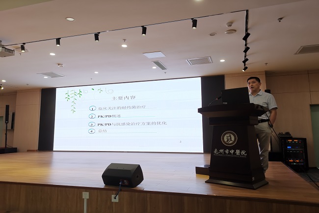 培訓由黨委書記唐超進行授課,以《基于PK/PD特點看抗菌藥物合理使用》為題進行講授,首先唐超書記以日益嚴重的耐藥問題為開端,介紹了抗菌藥物規(guī)范應(yīng)用的必要性,隨后詳細講述了如何根據(jù)藥物PK/PD制定治療方案促進抗菌藥物的合理應(yīng)用以及如何根據(jù)藥物PK/PD進行抗感染治療藥物的優(yōu)化。