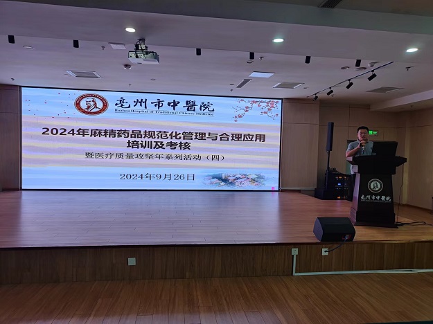 根據(jù)《安徽省醫(yī)療機(jī)構(gòu)麻醉藥品和精神藥品管理規(guī)定》,進(jìn)一步加強(qiáng)我院麻精藥品的管理,保障臨床合理需求,嚴(yán)防濫用和非法流弊。9月26日上午在亳州市中醫(yī)院第一會議室開展了“2024年度麻精藥品規(guī)范化管理和使用培訓(xùn)班”。會議由亳州市中醫(yī)院藥學(xué)部主任李思光主持。臨床、藥學(xué)、護(hù)理、醫(yī)療行政、保衛(wèi)、質(zhì)控等部門人員參加了此次培訓(xùn)。